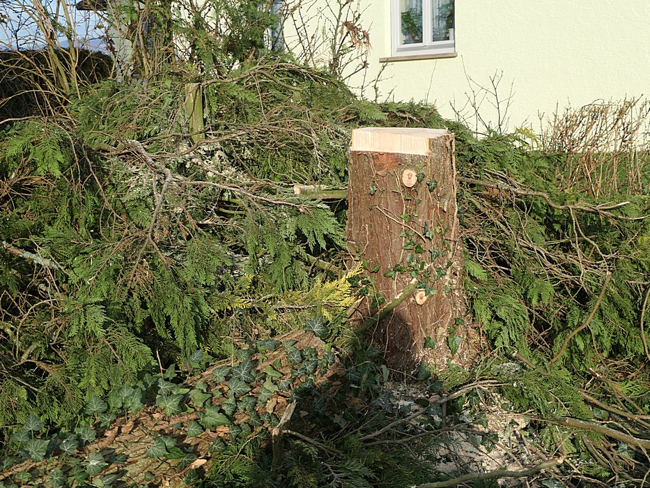 - 6.12.2022 - Vorgartenpflege ( Baumfällung ) durch Profis -