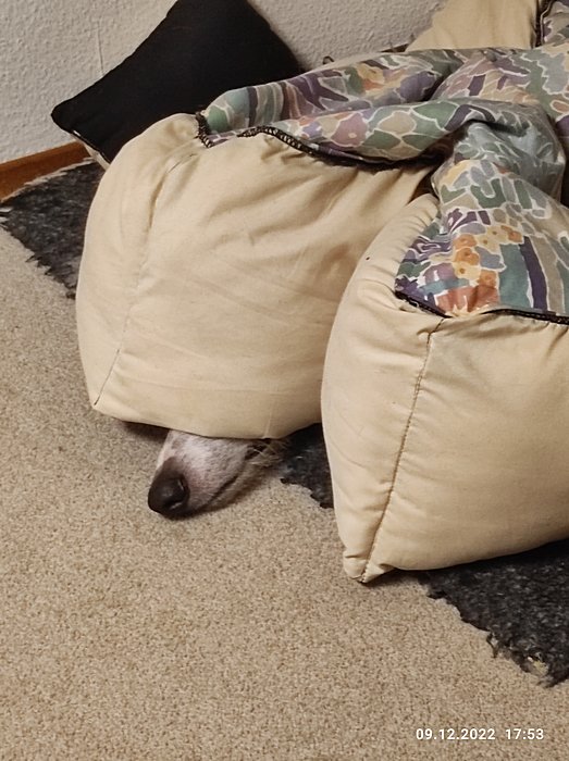 - 9.12.2022 - es wird kalt für Migo - Hundebett anders genutzt -