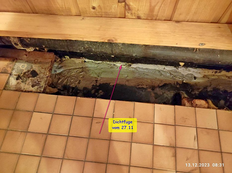 - 27.11.2023 - - Ich habe mich nicht getraut die Duschasse auszubauen um unter ihr die den Boden zu öffnen Und gehofft dass nur hier die Fuge undicht ist -